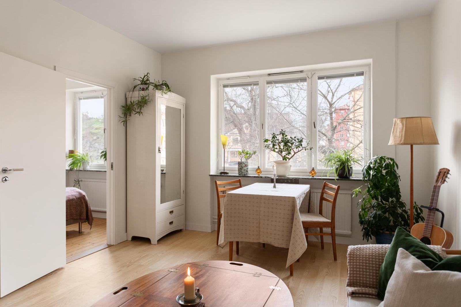 Drömmer du om en plats där storstadens puls känns långt borta, men där du ändå kan promenera till livfulla Hornstull på några minuter? Välkommen till Reimersholme – Södermalms grönskande pärla, omgiven av glittrande vatten. Här finns lummiga promenadstråk och ett lugn som är svårslaget. Här bor du bokstavligen på en ö, med semesterkänsla året om. Ta ett dopp från badbryggan innan frukost, paddla ut med en kanot i solnedgången eller bara njut av utsikten över Mälarens spegelblanka vatten. Livet på Reimersholme är harmoniskt och vackert.