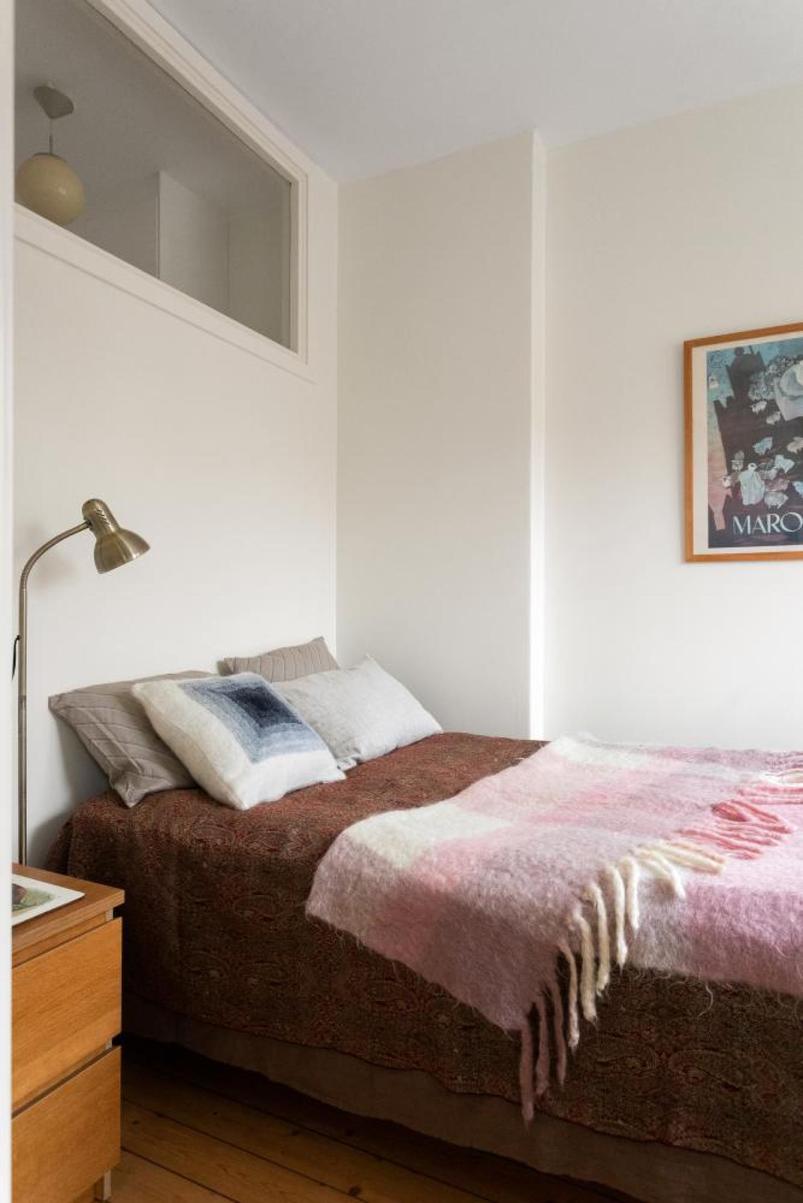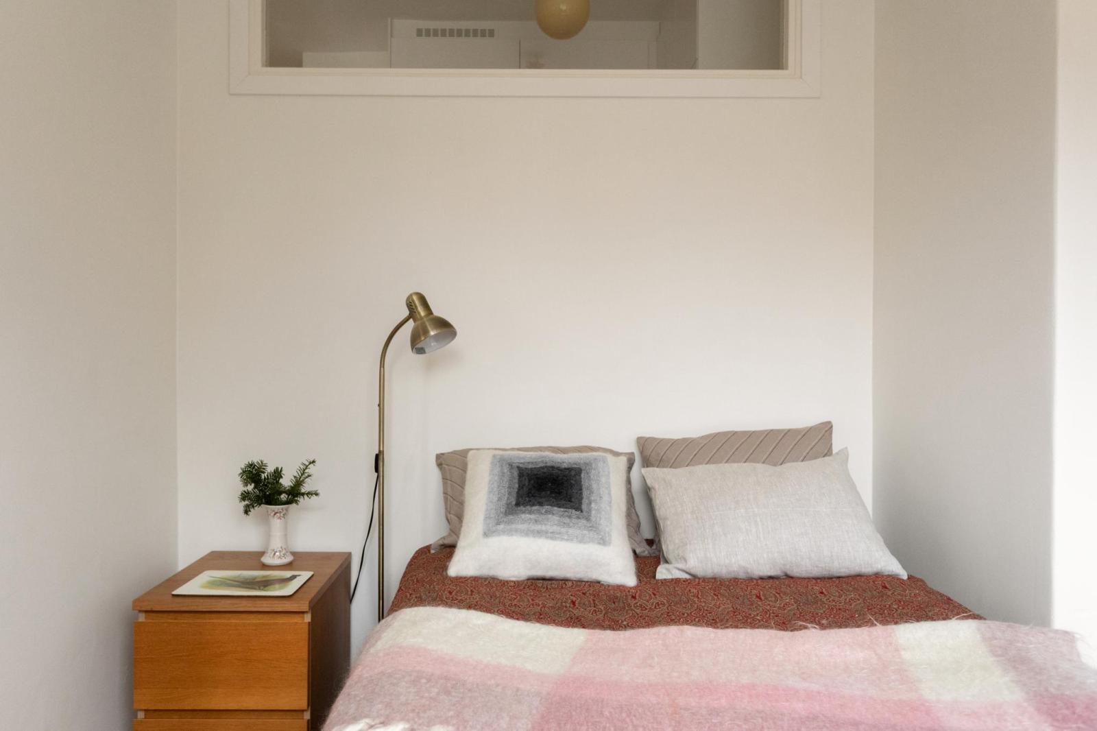 Intill vardagsrummet och köket finns sovrummet. Det stora fönstret med västerläge gör rummet ljust och trevligt. Golv i furu samt ljusa målade väggar. Rummet är ca 2,18 m brett vid fönstret och på längden ca 2,7 m så det är tillräckligt stort för dubbelsäng upp till 180 cm bredd.